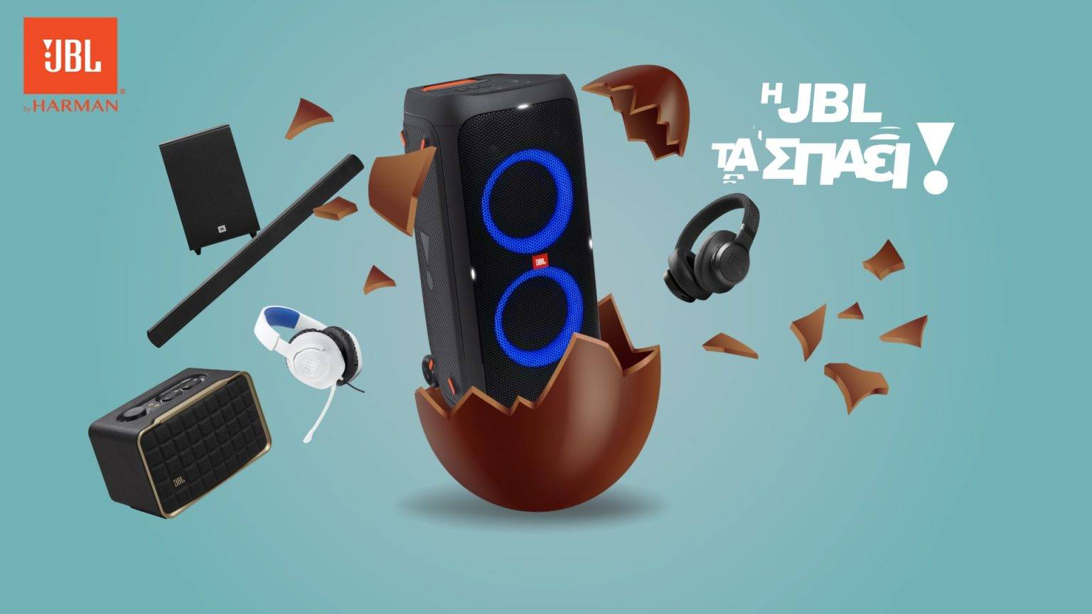 Για τη φετινή πασχαλινή περίοδο δημιουργήθηκε η καμπάνια «H JBL τα σπάει!». Στο πλαίσιο της καμπάνιας απεικονίζονται τα αγαπημένα σε όλους σοκολατένια πασχαλινά αυγά, μέσα από τα οποία βγαίνουν τα -επίσης αγαπημένα σε όλους- προϊόντα της JBL. Η καμπάνια βασίζεται στο στοιχείο του σοκολατένιου αυγού που παραπέμπει σε Πάσχα, και μέσα στο οποίο κρύβονται όμορφες εκπλήξεις. Μόλις το αυγό σπάσει, αποκαλύπτεται και η έκπληξη. Ταυτόχρονα, το μήνυμα χρησιμοποιείται μεταφορικά για να επιβεβαιώσει τις κορυφαίες προσφορές που έχει βγάλει η JΒL για τη φετινή πασχαλινή περίοδο. Έτσι λοιπόν, τα αυγά σπάνε, και οι τιμές τα σπάνε!