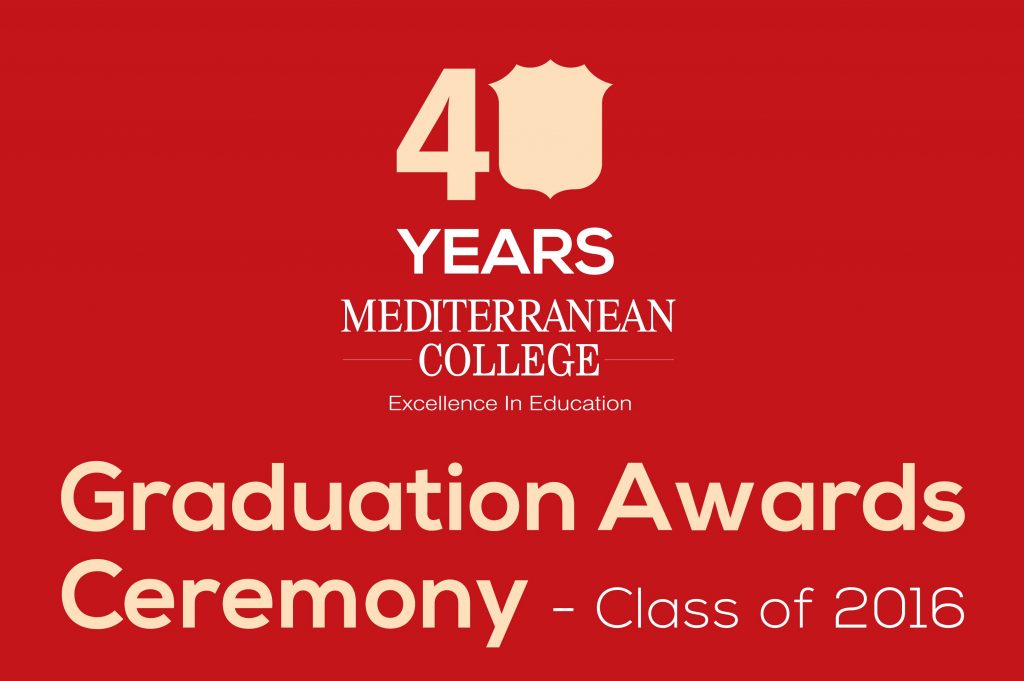 Η επετειακή Τελετή Αποφοίτησης θα διεξαχθεί σύμφωνα με το τελετουργικό απονομής Πτυχίων στα πρότυπα των συνεργαζόμενων Βρετανικών Πανεπιστημίων. Στην εκδήλωση θα απονεμηθούν πτυχία στους απόφοιτους της Τάξης του 2016 σε Bachelor’s και Master’s των Σχολών Διοίκησης Επιχειρήσεων, Πληροφορικής, Εκπαίδευσης, Ψυχολογίας, Μηχανικών, Τουρισμού & Φιλοξενίας του Mediterranean College, από το συνεργαζόμενο Βρετανικό Πανεπιστήμιο University of Derby, καθώς και διπλώματα προγραμμάτων επαγγελματικής εξειδίκευσης στους αποφοίτους του Mediterranean Professional Studies. Στο πλαίσιο της επετειακής Τελετής Αποφοίτησης θα απονεμηθούν τα Education Awards 2016, τα ετήσια βραβεία εκπαίδευσης του Mediterranean College.