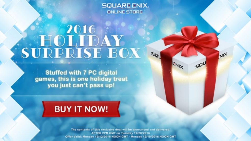 Η Χριστουγεννιάτικη ατμόσφαιρα πλανιέται στον αέρα, με τη Square Enix να συνεχίζει την ετήσια παράδοση του holiday surprise box και φέτος, δίνοντάς μας την ευκαιρία να απολαύσουμε παιχνίδια που κοστίζουν στα 70€+ με μόλις… 6,49€! Μέχρι τώρα το κουτί έχει φιλοξενήσει παιχνίδια από τις σειρές Lara Croft, Thief, Hitman και Final Fantasy, μεταξύ άλλων, και η σελίδα της Square Enix μας υπόσχεται 7 διαφορετικά παιχνίδια, τα οποία θα ανακοινωθούν στις 2 μ.μ. στις 19 του μήνα. Αντί για ένα τσούρμο games, το κουτί προσφέρει κωδικό για κάθε παιχνίδι ώστε, αν έχεις τον αλτρουισμό να τα μοιραστείς, να μπορείς να δώσεις οποιοδήποτε από αυτά ως δώρο σε κάποιον. Μπορείς να κάνεις pre-order το holiday surprise box από εδώ (όπου μπορείς και να δεις όλες τις πληροφορίες για αυτό) μέχρι τις 19/12, με το κουτί να γίνεται διαθέσιμο από τις 20 του μήνα. Όλα τα παιχνίδια είναι για Η/Υ και οι κωδικοί ενεργοποιούνται μέσω Steam. Κοινώς, μόλις απέκτησες την καλύτερη δικαιολογία για να μη ξεκολλήσεις από τον υπολογιστή σου για πολλές, πολλές ώρες στις φετινές γιορτές!